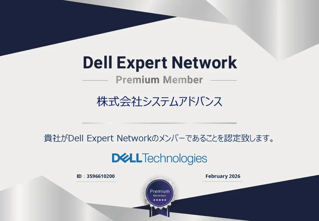 この認定により、弊社はDell専任のアカウント・マネージャーのサポートのもと、お客様へより有利な条件でのDell製品のご提案が可能となります。また、最新の製品情報やトレーニングへのアクセスを通じて、ITサービスの品質・専門性をさらに高めてまいります。